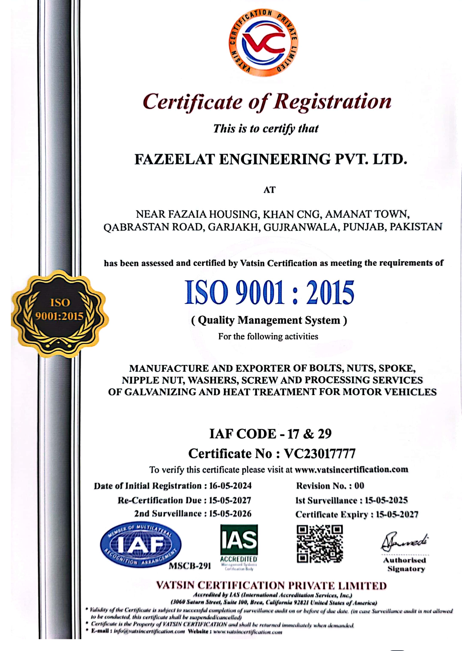 was founded in 2014, bringing years of enterprise expertise to the production and sale of various fasteners. We proudly stand as the largest manufacturers of fasteners in Pakistan.